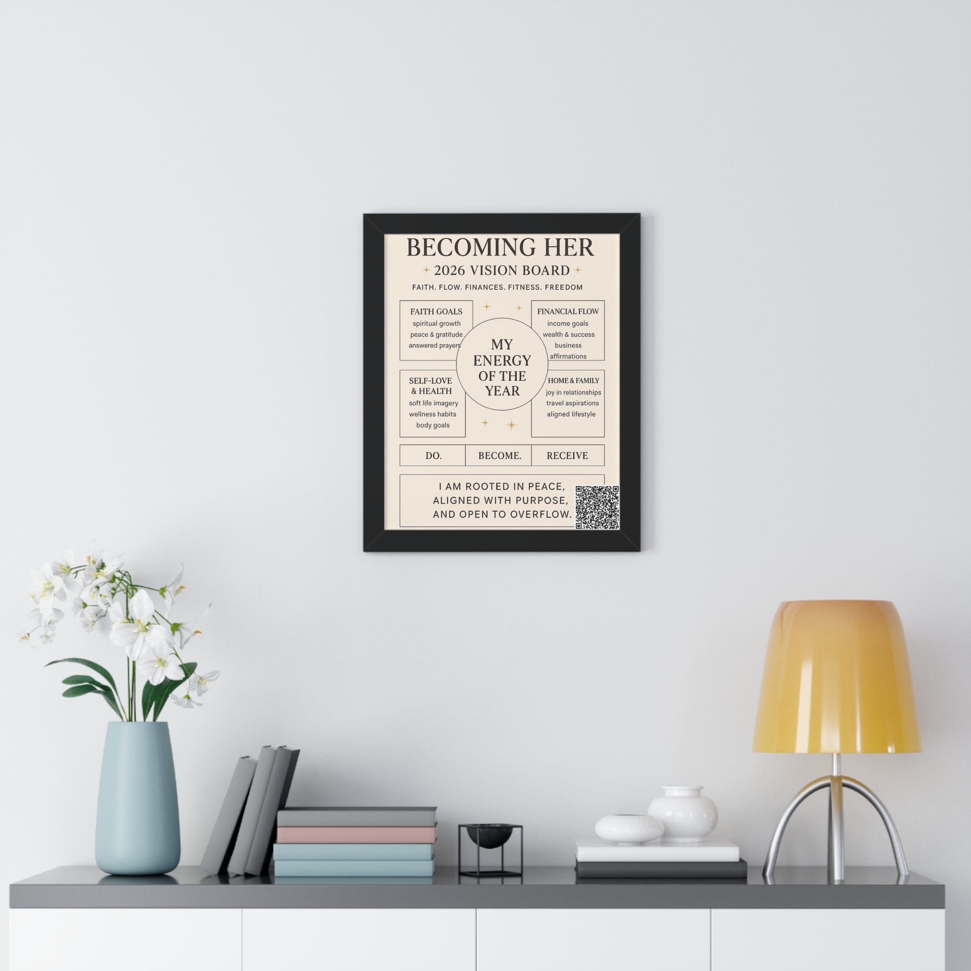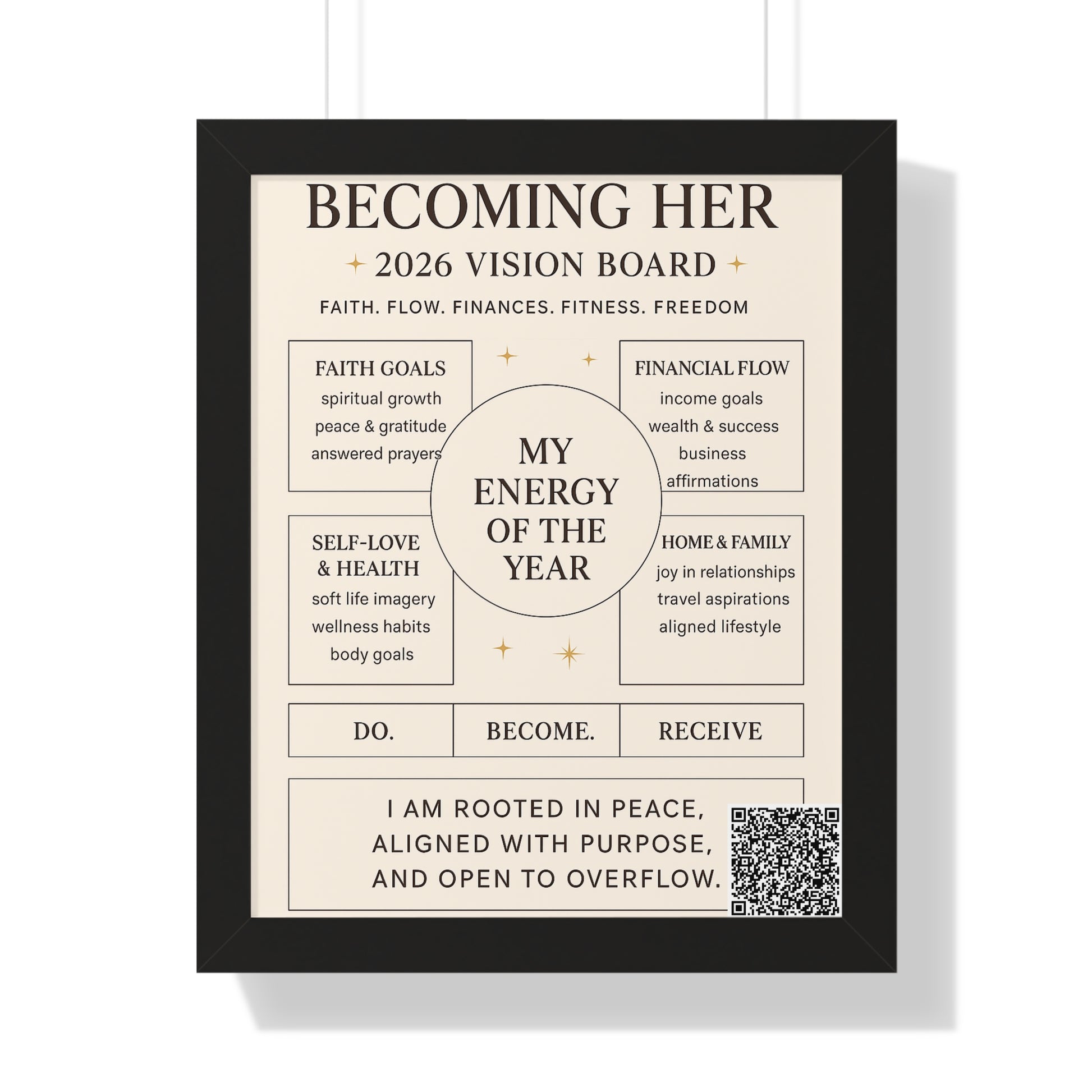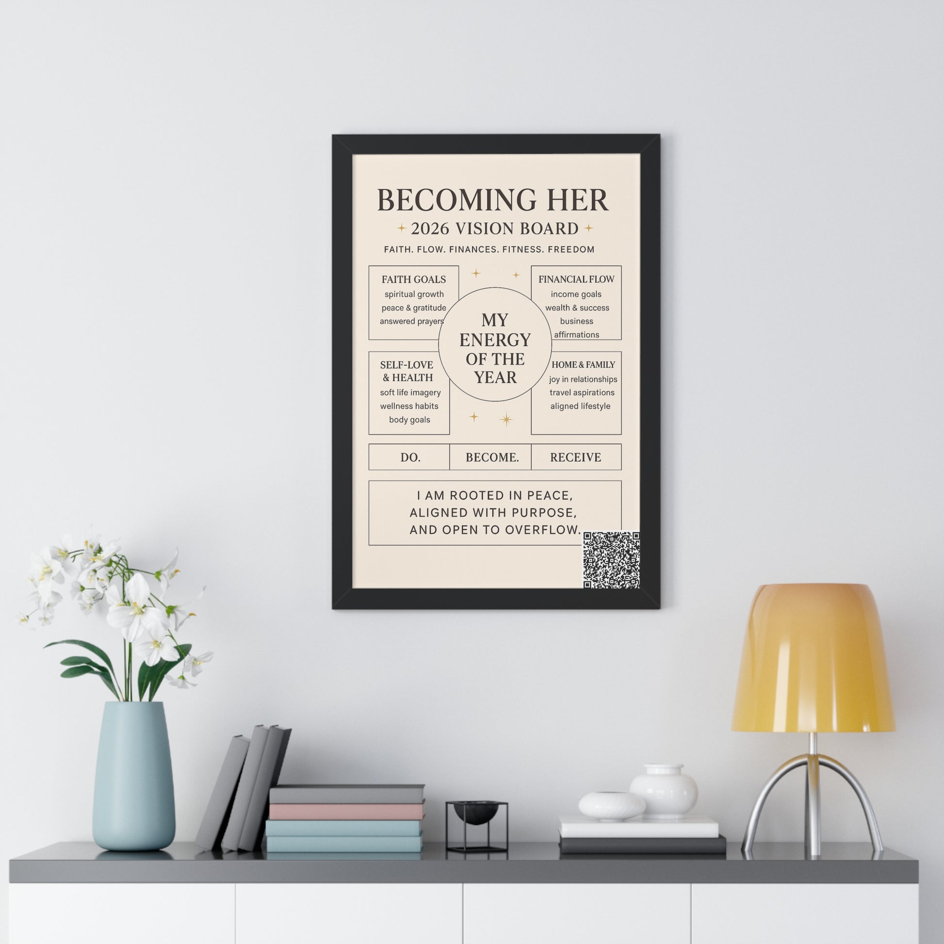 Becoming Her 2026 Vision Board Framed Poster — “My Energy of the Year” Motivational Wall Art