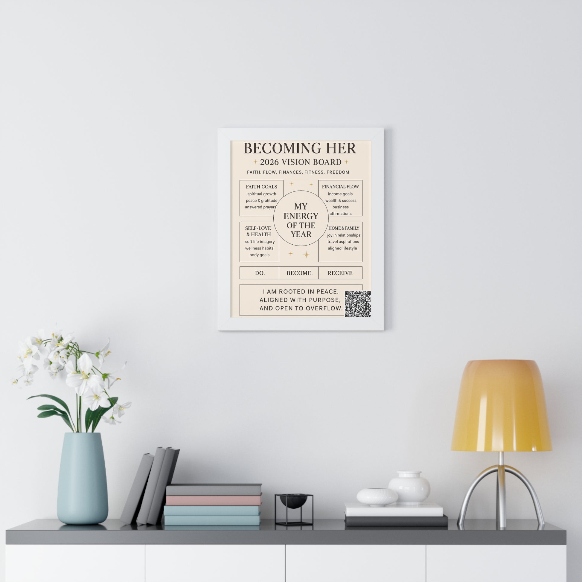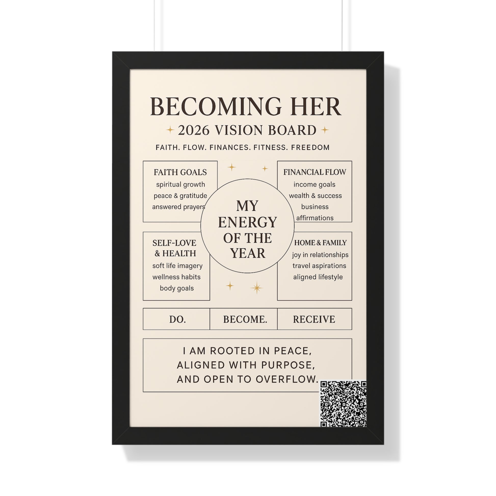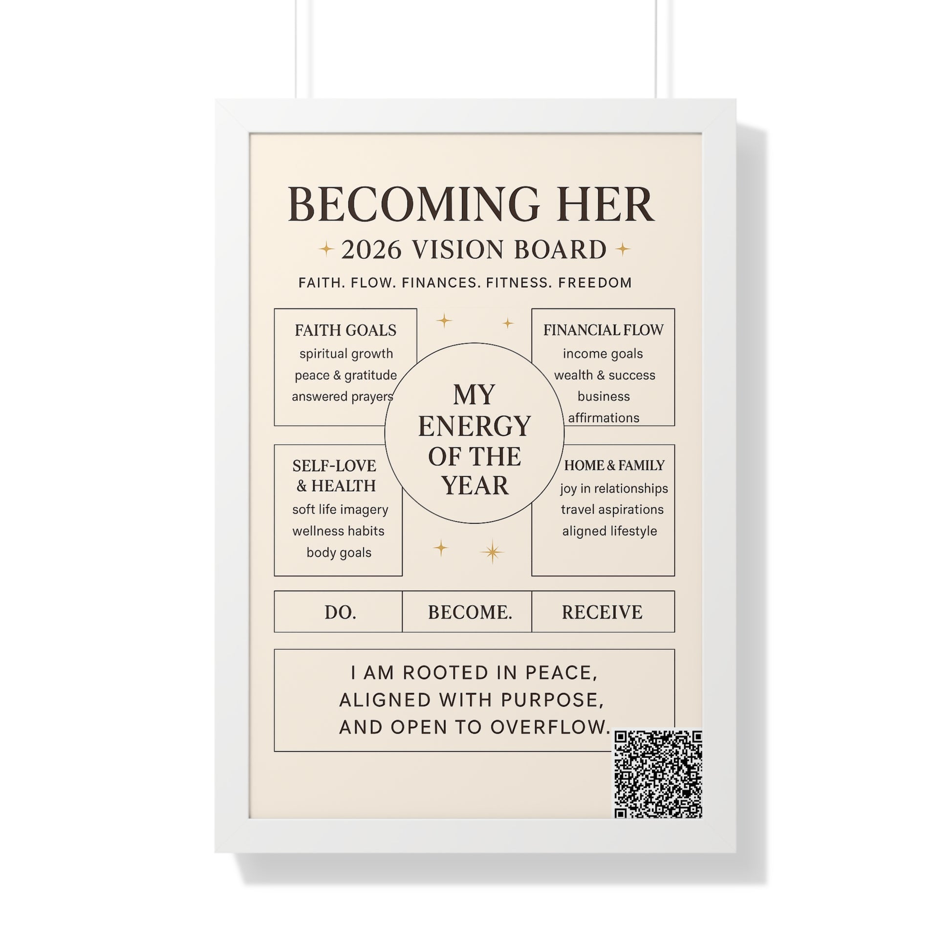 Becoming Her 2026 Vision Board Framed Poster — “My Energy of the Year” Motivational Wall Art