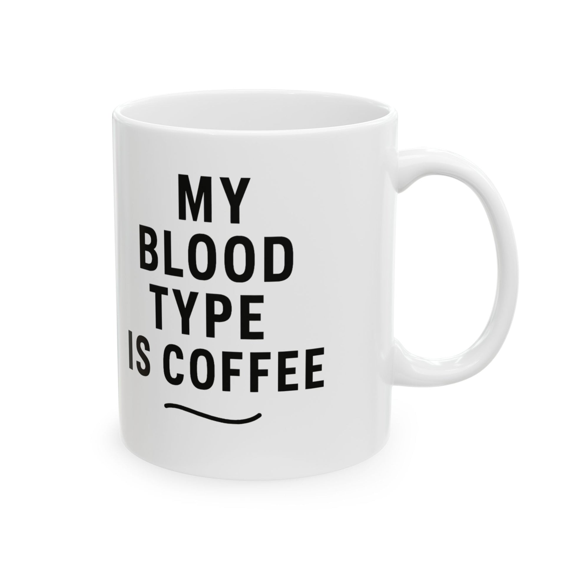 Funny Ceramic Mug - "My Blood Type is Coffee" 11oz & 15oz